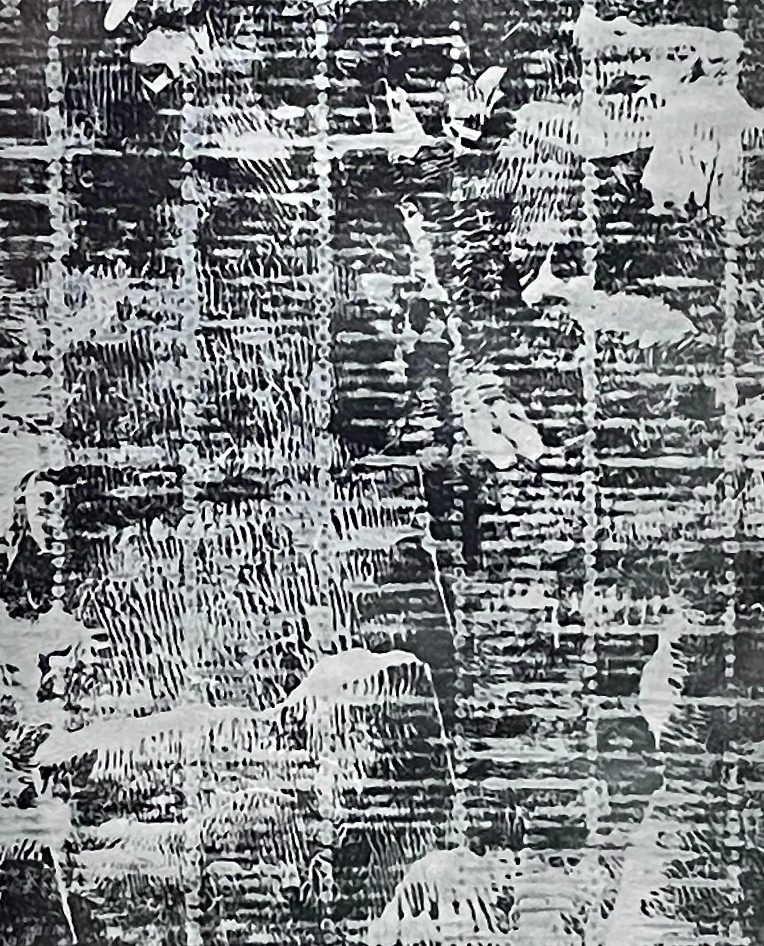 The black acrylic paintings reflect and refer to the surface of Layers II and the idea behind the work with its cladded walls, the chaotic and circumstance block-out in their expression. An expression that is rarely seen in Gudruns paintings. Though straight and horizontal lines can be spotted.